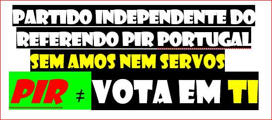 PORTUGAL PIR PARTIDO INDEPENDENTE DO REFERENDO ÚNICO QUE SATISFAZ TODOS OS REQUISITOS DEMOCRÁTICOS E LEGAIS EXIGIDOS NA CRP A LEI DAS LEIS A QUE TODAS AS OUTRAS SE SUBMETEM SOB PENA DE VIOLAÇÃO QUE DÁ PRISÃO TRANSFORMA COMUNISTA FASCISTA NAZISTA DEMOCRACISTA GLOBALISTA